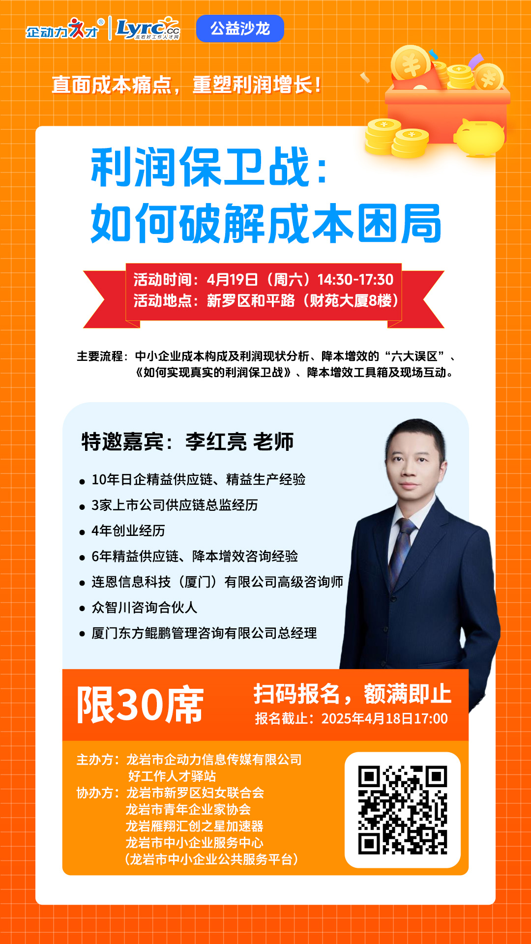 當前,中小企業(yè)在成本高與利潤承壓的雙重挑戰(zhàn)下,普遍陷入“越降本、越虧損”的困局。數(shù)據(jù)顯示,2022年福建省各中小企業(yè)平均利潤率不足5%,超60%企業(yè)因盲目削減研發(fā)、人力等核心投入導致競爭力下滑,甚至引發(fā)質(zhì)量危機與客戶流失。本次沙龍直面企業(yè)最敏感的利潤痛點,通過拆解“降本增效六大誤區(qū)”,提供價值鏈成本分析、動態(tài)預算管理等可落地的工具箱,助力企業(yè)跳出短期行為陷阱,構(gòu)建可持續(xù)的利潤增長模式。