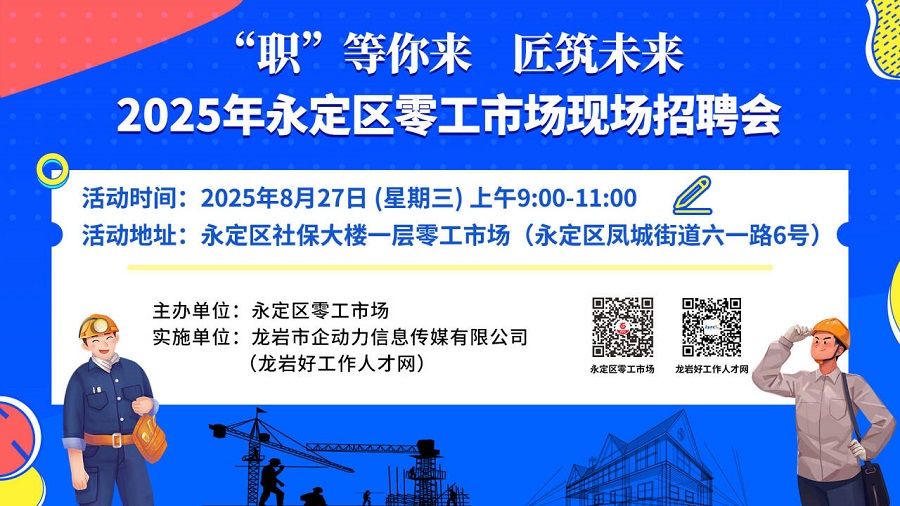 地址:永定區(qū)社保大樓一層零工市場(chǎng)(永定區(qū)鳳城街道六一路6號(hào))