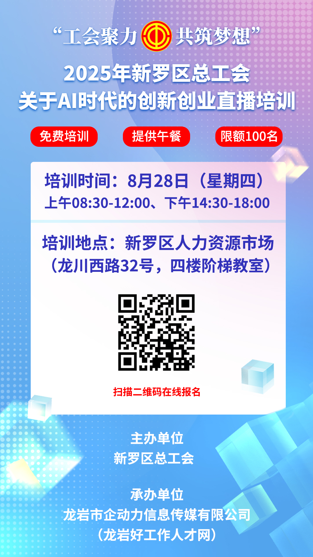 - “工會(huì)聚力 共筑夢(mèng)想”2025年新羅區(qū)總工會(huì)關(guān)于AI時(shí)代的創(chuàng)新創(chuàng)業(yè)直播培訓(xùn)