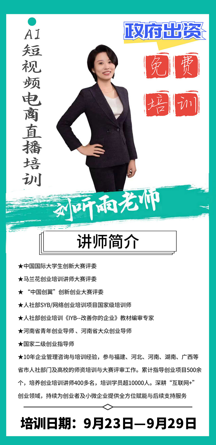 【連城免費(fèi)培訓(xùn)】連城電商AI短視頻直播免費(fèi)培訓(xùn)10月27日開(kāi)班!人社部部級(jí)培訓(xùn)師授課,名額有限速搶?zhuān)?/a>