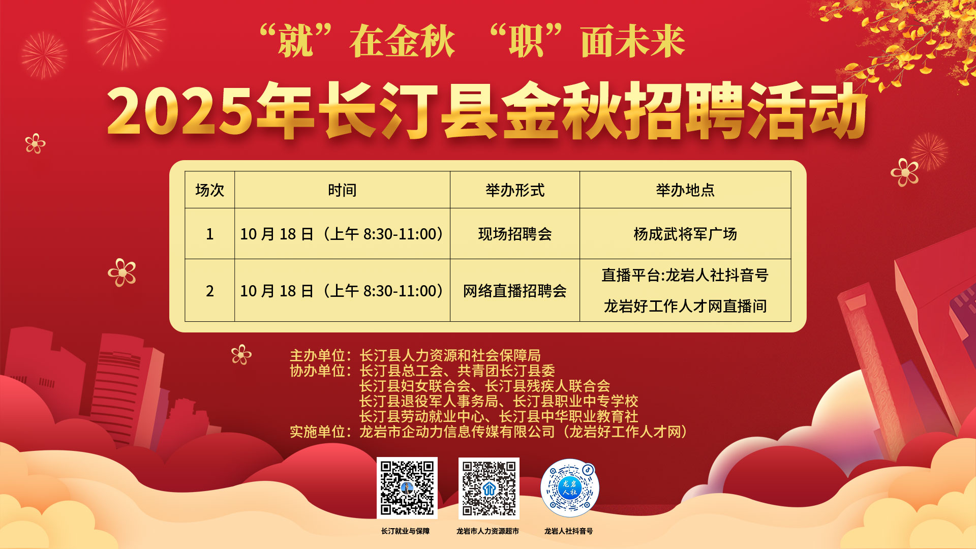 “就”在金秋,“職”面未來2025年長汀縣金秋招聘巡場直播招聘會 |