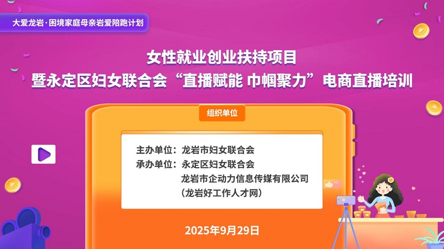 永定區(qū)有電商直播創(chuàng)業(yè)意愿的城鄉(xiāng)女性;待業(yè)、下崗女性及全職媽媽群體;有意拓展線上渠道的女性個(gè)體工商戶等女性群體。