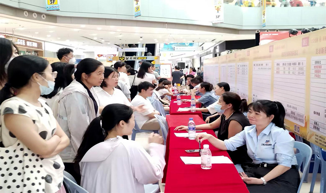 招聘會現(xiàn)場人頭攢動,求職與招聘的雙向奔赴在此上演。此次招聘會邀請了福龍馬集團(tuán)股份有限公司、福建龍凈高精設(shè)備制造有限公司 、龍工(福建)鑄鍛有限公司等106家優(yōu)質(zhì)企業(yè)到場,提供了1850個崗位,為現(xiàn)場求職帶來了豐富多樣的就業(yè)選擇,現(xiàn)場求職者或是仔細(xì)瀏覽招聘海報(bào)上的崗位信息,或是坐在招聘人員面前,初步了解企業(yè)及崗位信息。