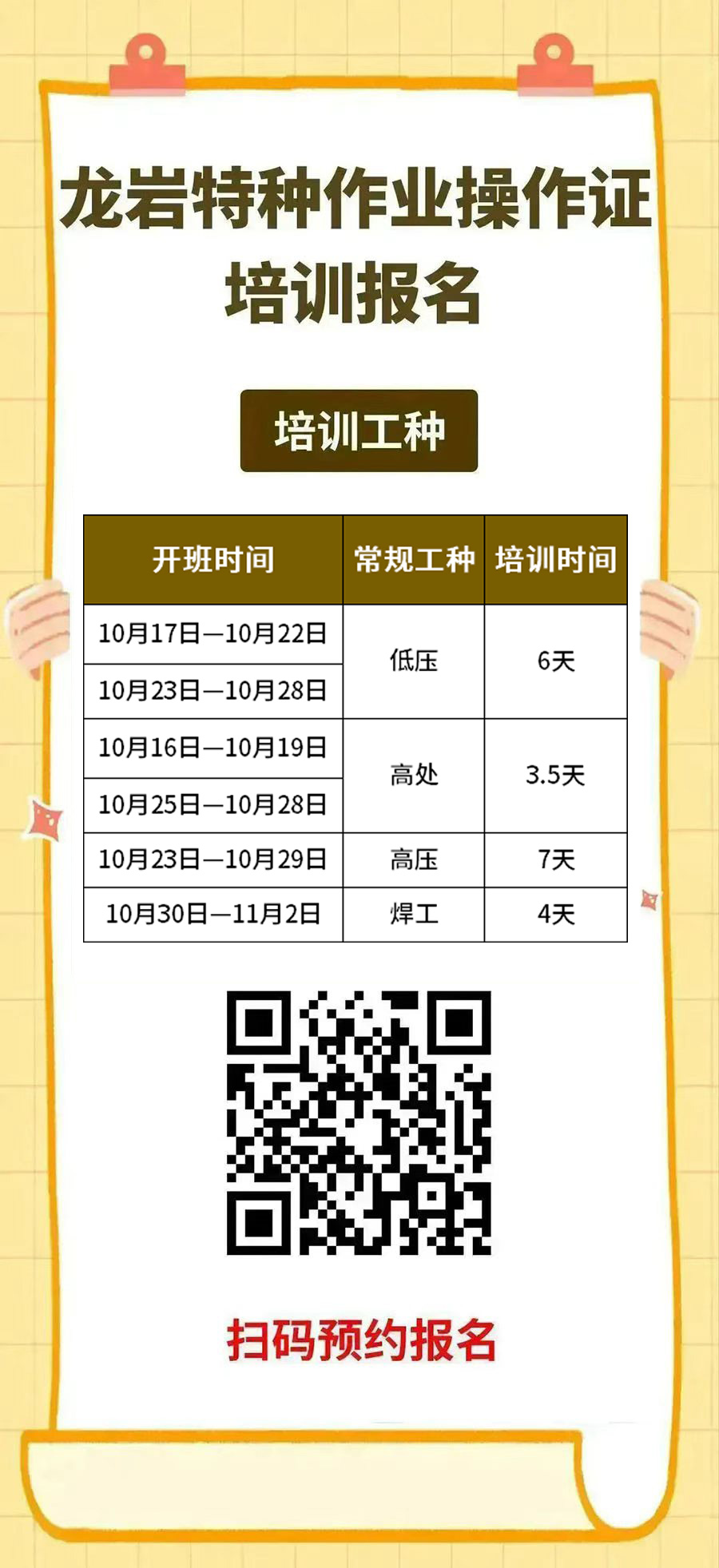 高處作業(yè)新訓(xùn)1班:10月16日-10月19日【3.5天】