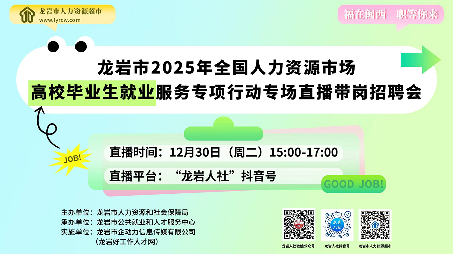 “福在閩西 職等你來(lái)”龍巖市2025年全國(guó)人力資源市場(chǎng)高校畢業(yè)生就業(yè)服務(wù)專項(xiàng)行動(dòng)專場(chǎng)直播帶崗招聘會(huì)