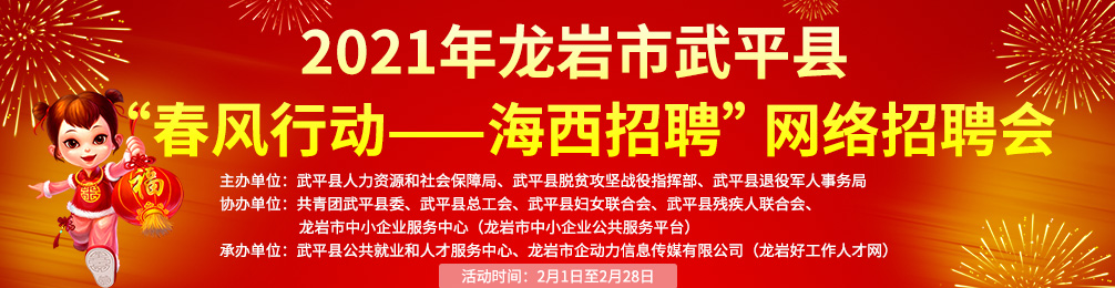 承辦單位: 武平縣公共就業(yè)和人才服務中心、龍巖市企動力信息傳媒有限公司(龍巖好工作人才網(wǎng))