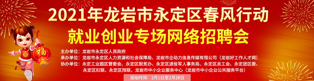 承辦單位: 龍巖市永定區(qū)人力資源和社會保障局、龍巖市企動力信息傳媒有限公司(龍巖好工作人才網(wǎng))