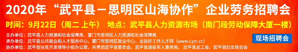 舉辦單位:武平縣人力資源和社會(huì)保障局、廈門(mén)市思明區(qū)人力資源和社會(huì)保障局 承辦單位:武平縣公共就業(yè)和人才服務(wù)中心、廈門(mén)市思明區(qū)就業(yè)中心、龍巖好工作人才網(wǎng)