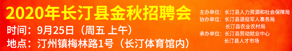 舉辦單位:長(zhǎng)汀縣人力資源和社會(huì)保障局 協(xié)辦單位:長(zhǎng)汀縣退役軍人事務(wù)局、長(zhǎng)汀縣農(nóng)業(yè)農(nóng)村局 承辦單位:長(zhǎng)汀縣勞動(dòng)就業(yè)中心、長(zhǎng)汀縣人才市場(chǎng)