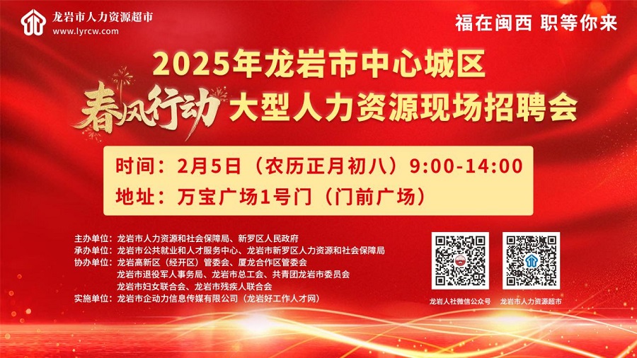 舉辦地點(diǎn):新羅區(qū)人力資源市場(chǎng)(龍川西路32號(hào))