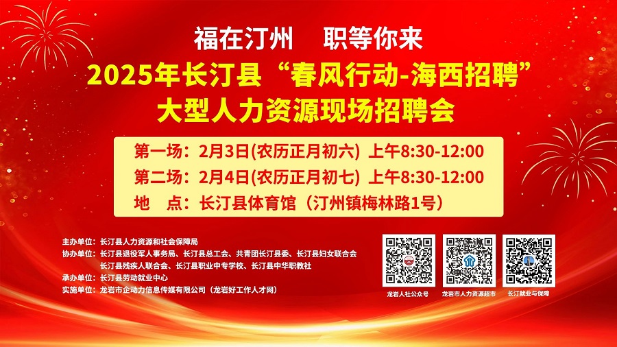 舉辦單位:長(zhǎng)汀縣人力資源和社會(huì)保障局