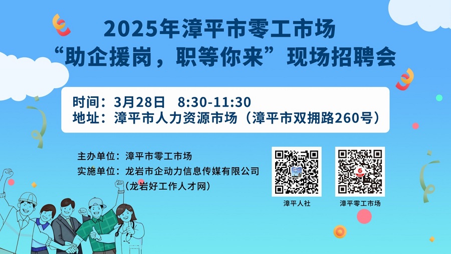 舉辦地點(diǎn):龍巖市人力資源超市網(wǎng) 漳平市就業(yè)網(wǎng) 龍巖好工作人才網(wǎng)