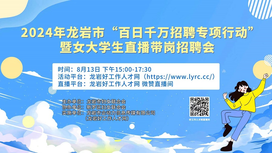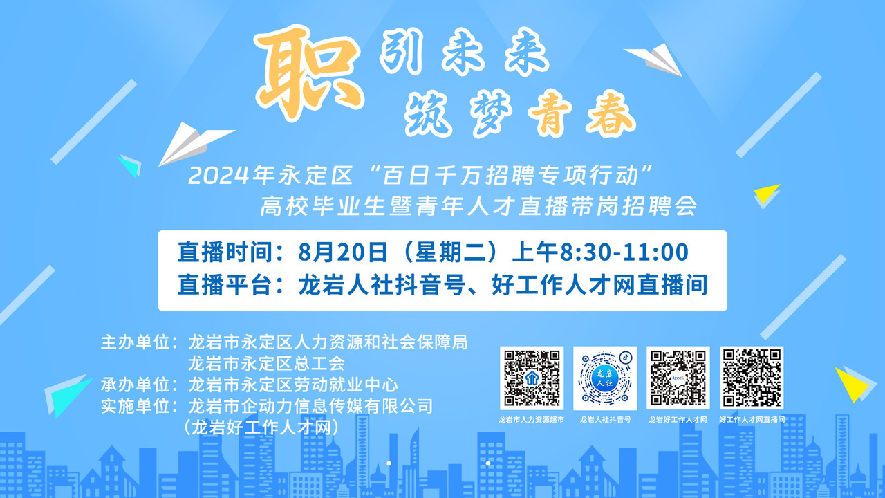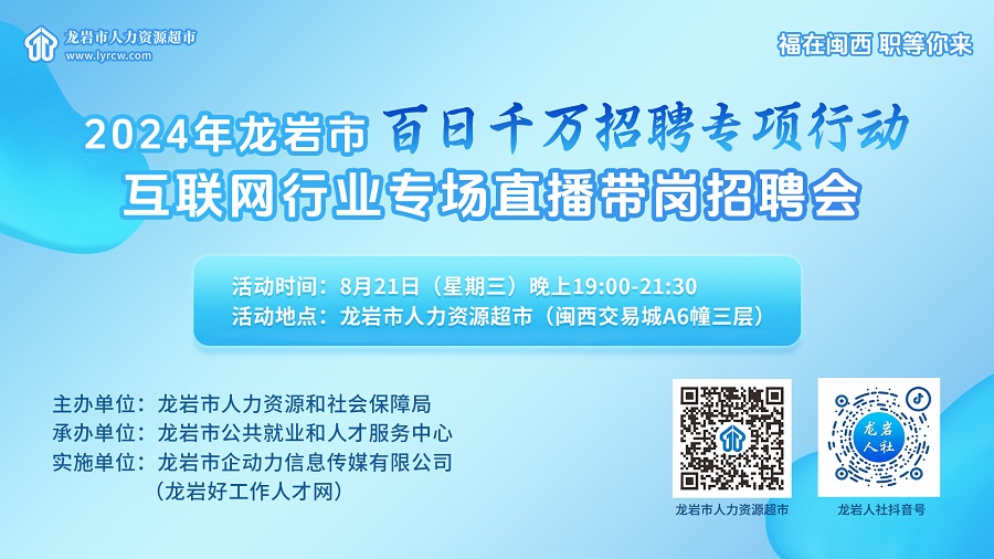 舉辦地點(diǎn):龍巖人社抖音號(hào)、龍巖好工作人才網(wǎng)直播間