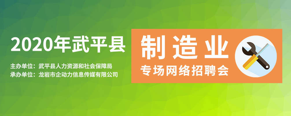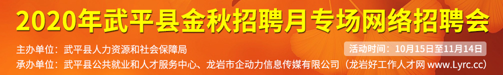 舉辦單位:武平縣人力資源和社會保障局 承辦單位:武平縣公共就業(yè)和人才服務(wù)中心、龍巖市企動力信息傳媒有限公司(龍巖好工作人才網(wǎng))