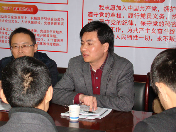 2014年1月10日,公司召開黨支部成立大會,蒞臨大會的領(lǐng)導(dǎo)和來賓有:市委非公企業(yè)工委副書記鄭煌泰同志、市委組織部組織三科陳蔚華同志;區(qū)委組織部副部謝鋒同志、區(qū)委企業(yè)工委書記姜國強同志、區(qū)委人才辦主任詹玲玲同志。參加會議的還有公司總經(jīng)理張勁華同志、全體黨員和員工。