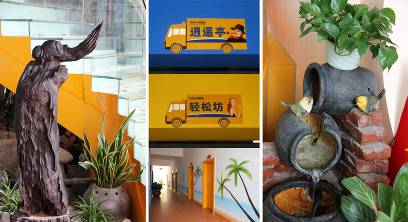 這家公司的整體設(shè)計(jì)以暖色調(diào)為主,內(nèi)飾天花板上繪有藍(lán)天白云,不論戶外怎么刮風(fēng)下雨,員工和來(lái)賓感覺(jué)都是在晴朗溫暖的天空下,云過(guò)風(fēng)輕;每日流淌于耳畔的輕緩音樂(lè),冬季全天候熱水供應(yīng),調(diào)皮活潑,不失大雅的逍遙亭、輕松坊(洗手間別名),匠心獨(dú)運(yùn)的陶罐、木藝、石藝風(fēng)情,讓人的聽(tīng)覺(jué)、觸覺(jué)、視覺(jué)恣意伸張。