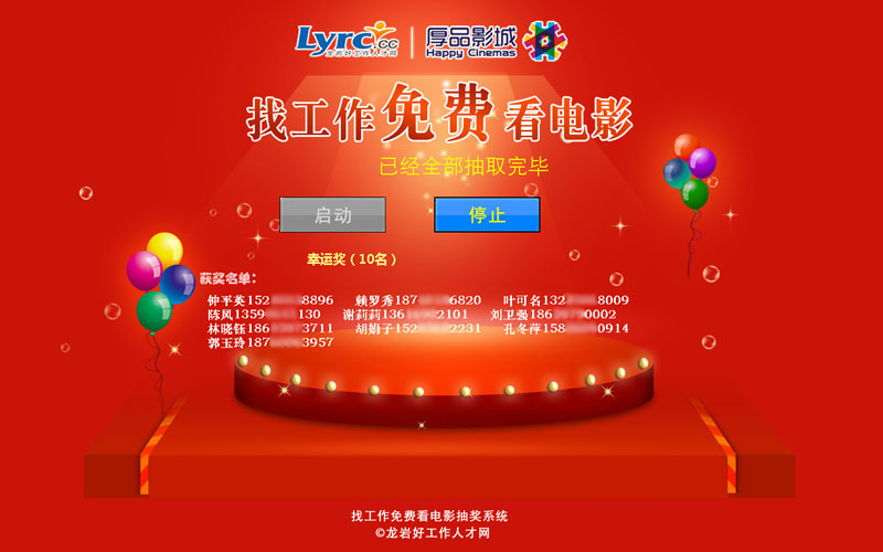 10月份找工作免費(fèi)看電影中獎(jiǎng)名單出爐啦……