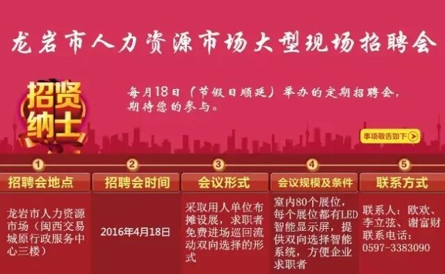 龍巖市人力資源市場2016年每月定期現(xiàn)場招聘會(huì)時(shí)間表