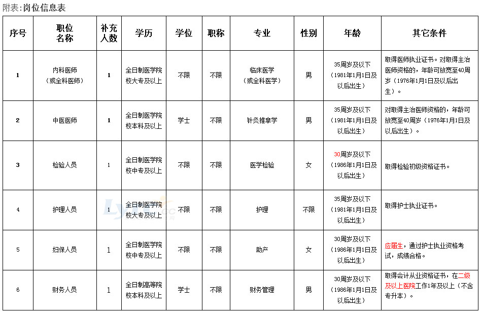 3、符合招聘要求的專業(yè)及其他條件(具體見附表)。
