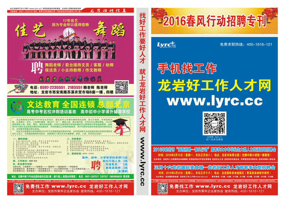 龍巖好工作人才網(wǎng)春節(jié)招聘專欄文字版3個(gè)月