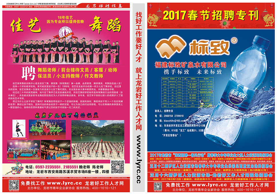 為進(jìn)一步做好龍巖市企業(yè)用工服務(wù)工作,促進(jìn)城鄉(xiāng)各類求職者充分就業(yè)為推薦企業(yè)、方便求職者,特推出全面、實(shí)用的便捷式《2018年春節(jié)招聘專刊》,匯集當(dāng)前我市各大企業(yè)招工信息,為求職者提供方便快速的參考指南。