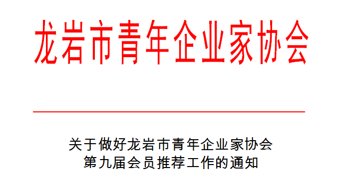 關(guān)于做好龍巖市青年企業(yè)家協(xié)會第九屆會員推薦工作的通知