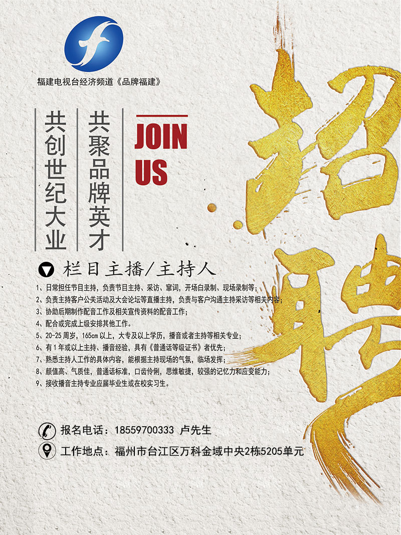 福建電視臺(tái)經(jīng)濟(jì)頻道《品牌福建》招聘欄目主播/主持人