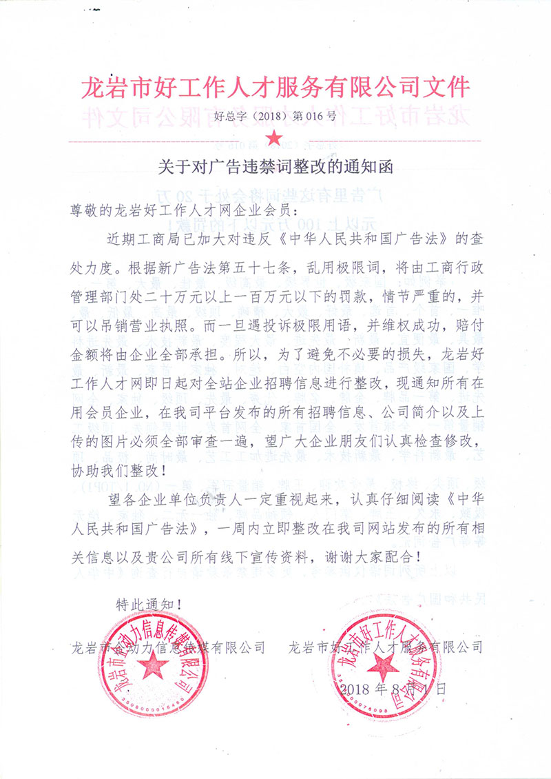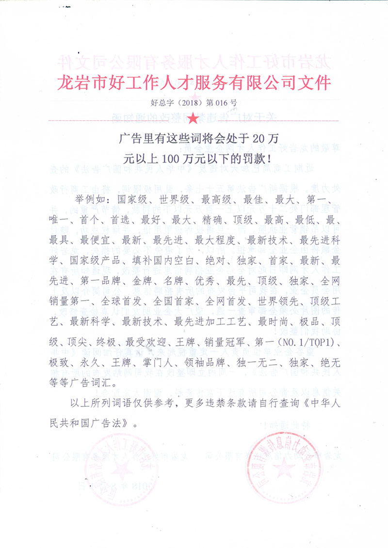 本網(wǎng)站經(jīng)福建省龍巖市人社局批準(zhǔn),為正規(guī)合法人才網(wǎng)站,人力資源服務(wù)許可證:(閩)人服證字〔2019〕第0801000113號