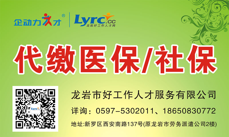 代辦地址:龍巖市新羅區(qū)西安南路137號(hào)(原龍巖市勞務(wù)派遣公司2樓)
