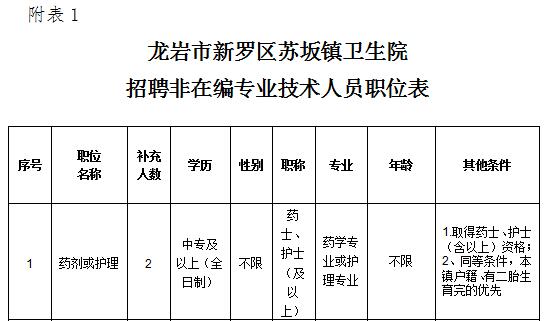 附件1:龍巖市新羅區(qū)蘇坂鎮(zhèn)衛(wèi)生院公開招聘非在編工作人員職位表