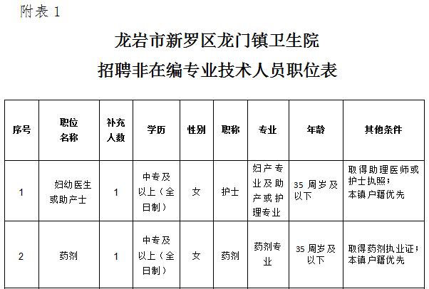 附件1:《龍巖市新羅區(qū)龍門鎮(zhèn)衛(wèi)生院公開(kāi)招聘非在編工作人員職位表》(點(diǎn)擊下載)