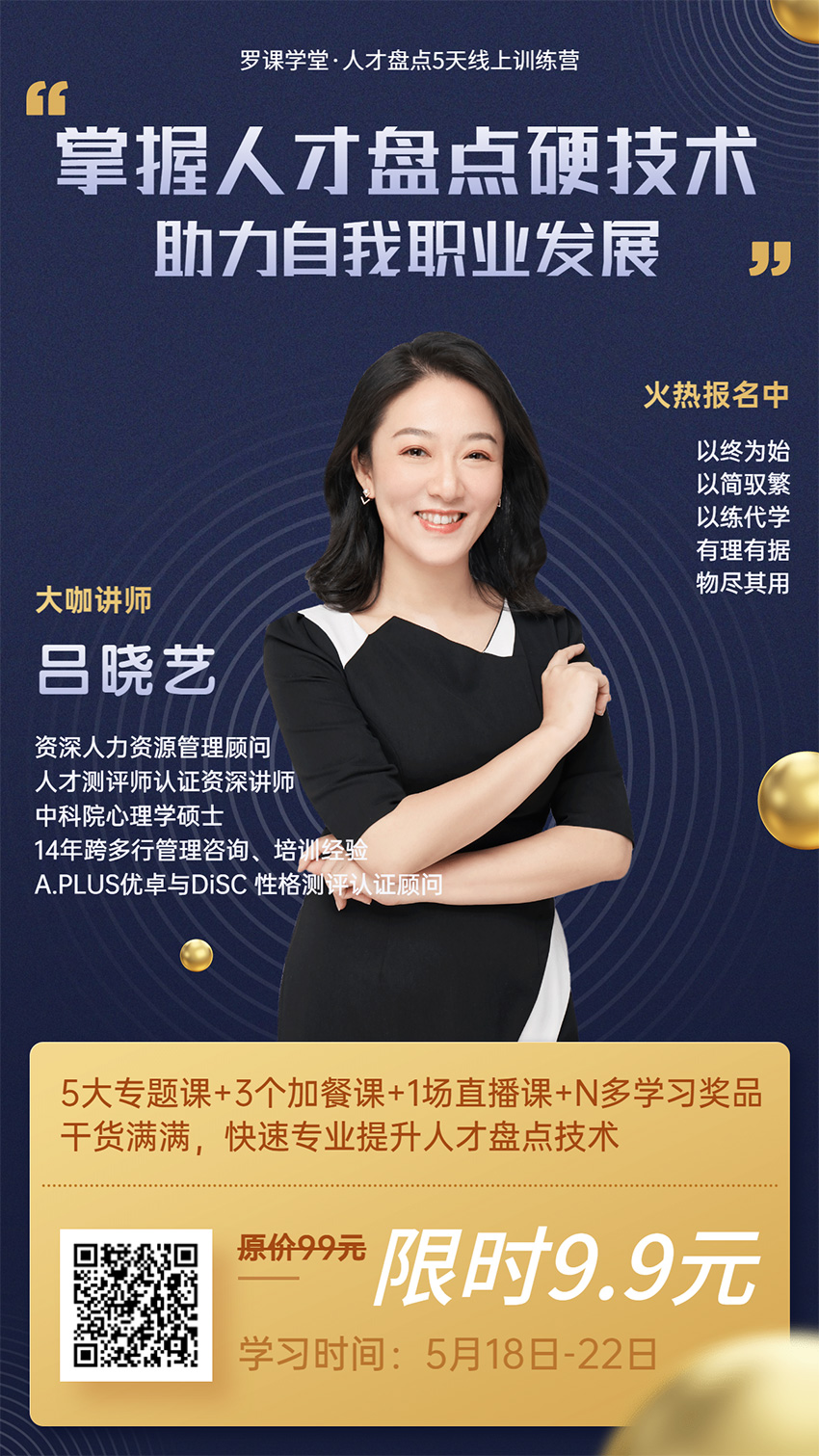 為了助力大家的職業(yè)發(fā)展,好工作人才網(wǎng)聯(lián)合羅課學堂,推出「人才盤點5天線上訓練營」課程。課程原價99元,限時只要9.9元!掃碼就能報名學習