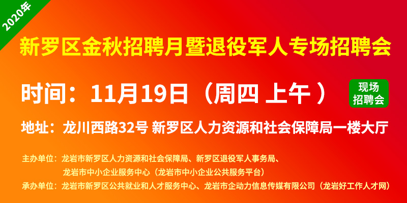 【11月19招聘會】2020年新羅區(qū)金秋招聘月暨退役軍人專場招聘會