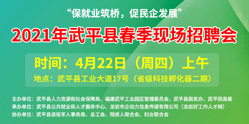 【4月22日武平招聘會(huì)】2021年武平縣春季現(xiàn)場(chǎng)招聘會(huì)