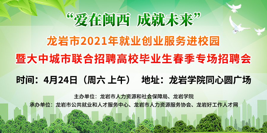 歡迎參加2021年4月24日龍巖學(xué)院高校畢業(yè)生春季專場(chǎng)招聘會(huì)