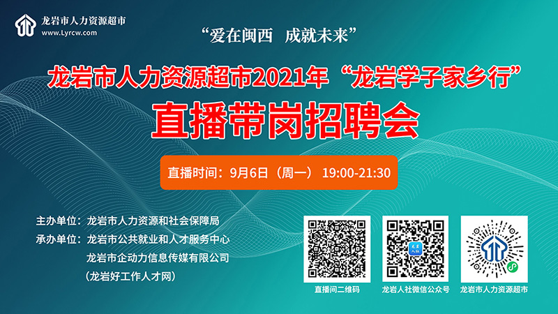 活動主題:“愛在閩西 成就未來”龍巖市人力資源超市2021年“龍巖學子家鄉(xiāng)行”直播帶崗招聘會