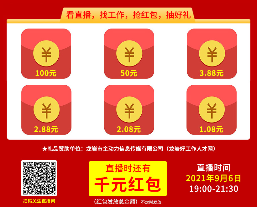 【直播回放】龍巖市人力資源超市2021年“龍巖學子家鄉(xiāng)行”直播帶崗招聘會