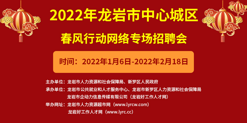 【正月初八直播】“福在閩西 職等你來”2022年龍巖市中心城區(qū)春風(fēng)行動直播帶崗專場招聘會