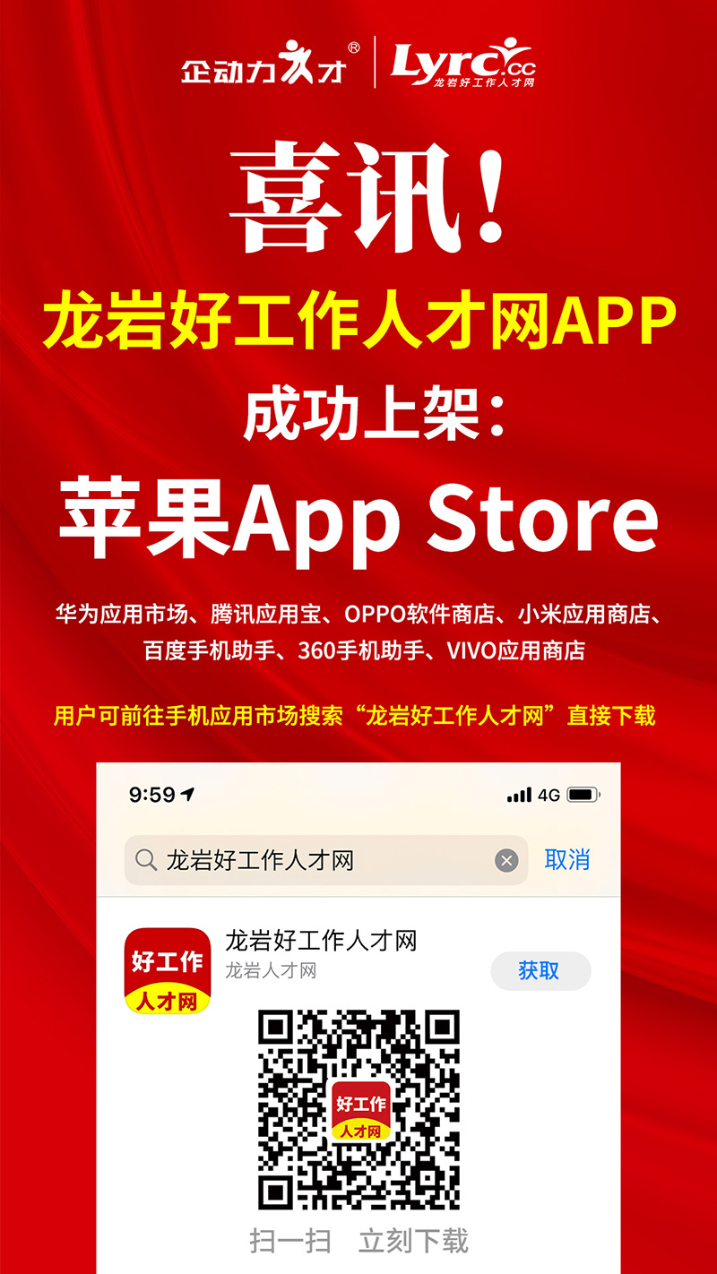 【喜訊】龍巖好工作人才網(wǎng)APP成功上架蘋(píng)果App Store和各大安卓應(yīng)用市場(chǎng)!