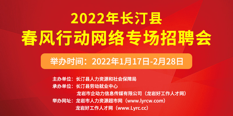 歡迎參加2022年長汀縣春風(fēng)行動(dòng)網(wǎng)絡(luò)專場招聘會(huì)