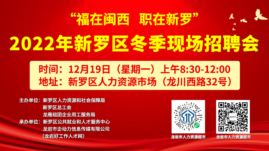 【12月19日現(xiàn)場招聘會】“福在閩西 職在新羅”2022年新羅區(qū)冬季現(xiàn)場招聘會