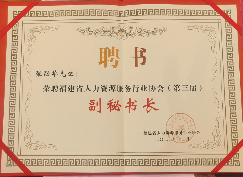 企動(dòng)力好工作人才網(wǎng)總經(jīng)理張勁華當(dāng)選福建省人力資源服務(wù)行業(yè)協(xié)會(huì)副秘書長(zhǎng)