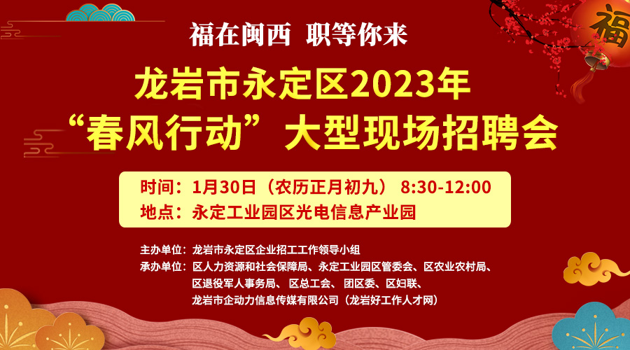 【正月初九】龍巖市永定區(qū)2023年春風(fēng)行動現(xiàn)場招聘會
