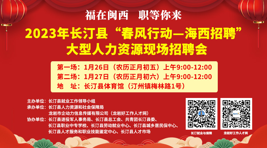 【正月初五、正月初六】2023年長(zhǎng)汀縣“春風(fēng)行動(dòng)-海西招聘”現(xiàn)場(chǎng)招聘會(huì)