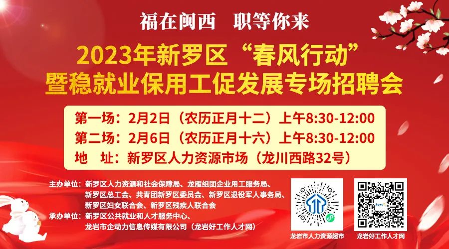 【正月十二】新羅區(qū)人力資源市場(chǎng),春風(fēng)行動(dòng)現(xiàn)場(chǎng)招聘會(huì)等你參加!