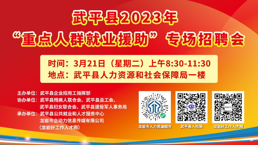 【3月21日】武平縣2023年“重點人群就業(yè)援助” 專場招聘會公告