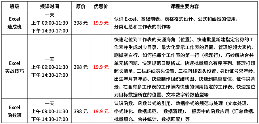 Excel線(xiàn)下培訓(xùn)一天班,兩人同時(shí)報(bào)名只需9.9元/人/班