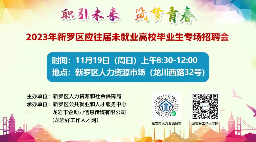 【11月19日】“職引未來 筑夢青春”2023年新羅區(qū)應(yīng)往屆未就業(yè)高校畢業(yè)生專場招聘會
