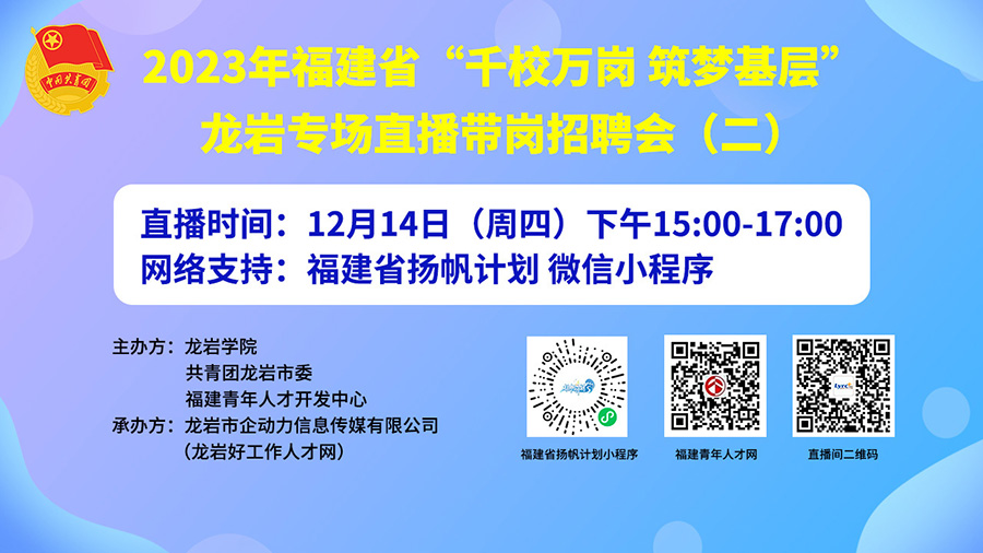 2023年福建省“千校萬崗 筑夢(mèng)基層”龍巖專場(chǎng)直播帶崗招聘會(huì)(二)