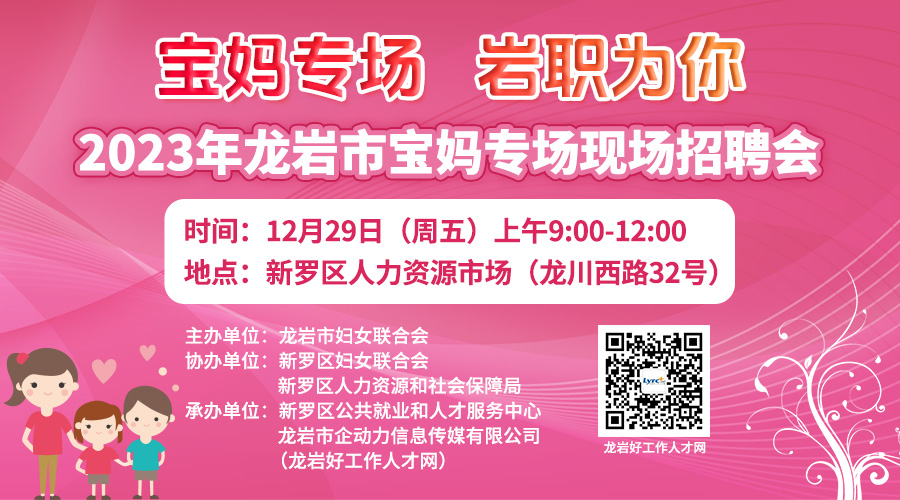 【12月29日】2023年龍巖市寶媽專場現(xiàn)場招聘會